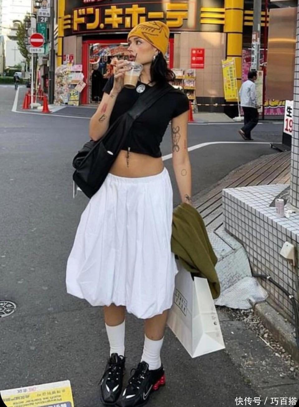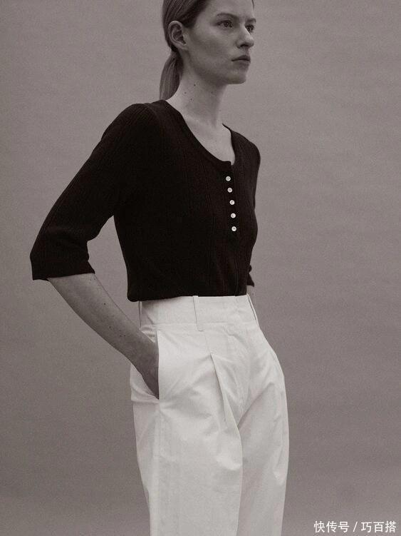 选择深色T恤搭配浅色半裙的组合模式,视觉减重5千克,可以选择纯黑色T恤搭配纯白色半裙,也可以选择藏蓝色T恤搭配米白色长裤。