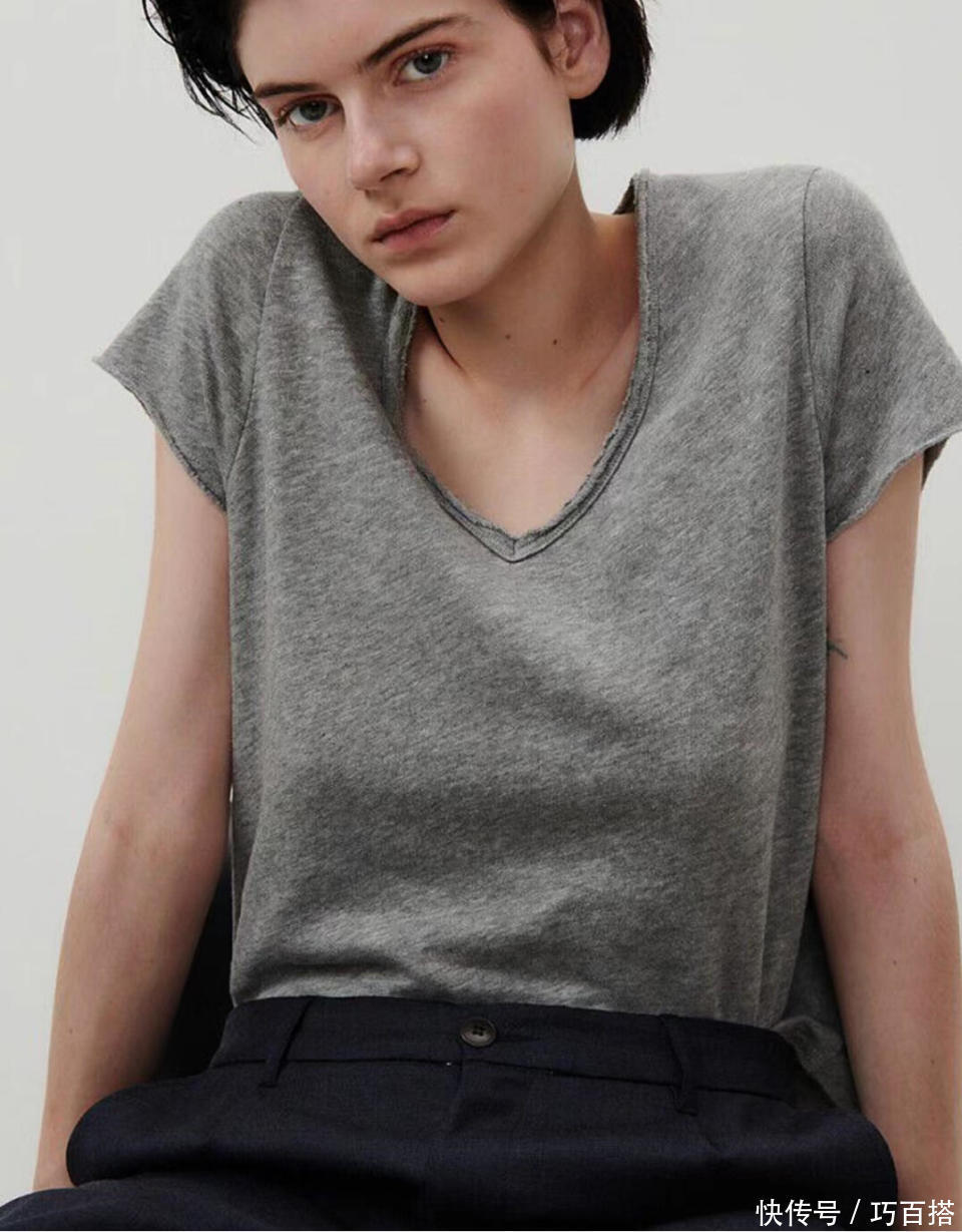 无论男女老少,在挑选T恤时一定不要碰刻意做旧款的破洞T恤,尤其是衣领破洞磨边设计,上身显邋遢不说,磨损效果会很有年代感,中老年女性学习借鉴会加剧沧桑感,年轻女孩学习借鉴也缺乏精致氛围。